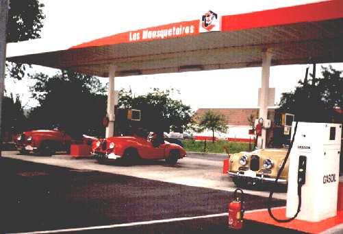 In this picture, Jim Miller takes petrol after the lunch stop at Pont d'Ouilly. |